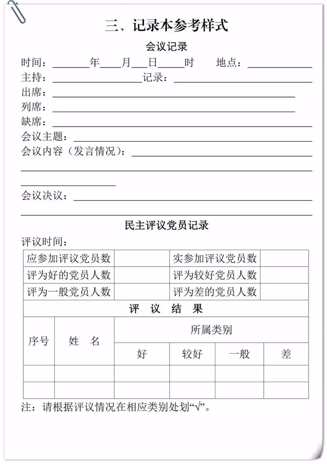 【支部建设】 党支部会议记录格式